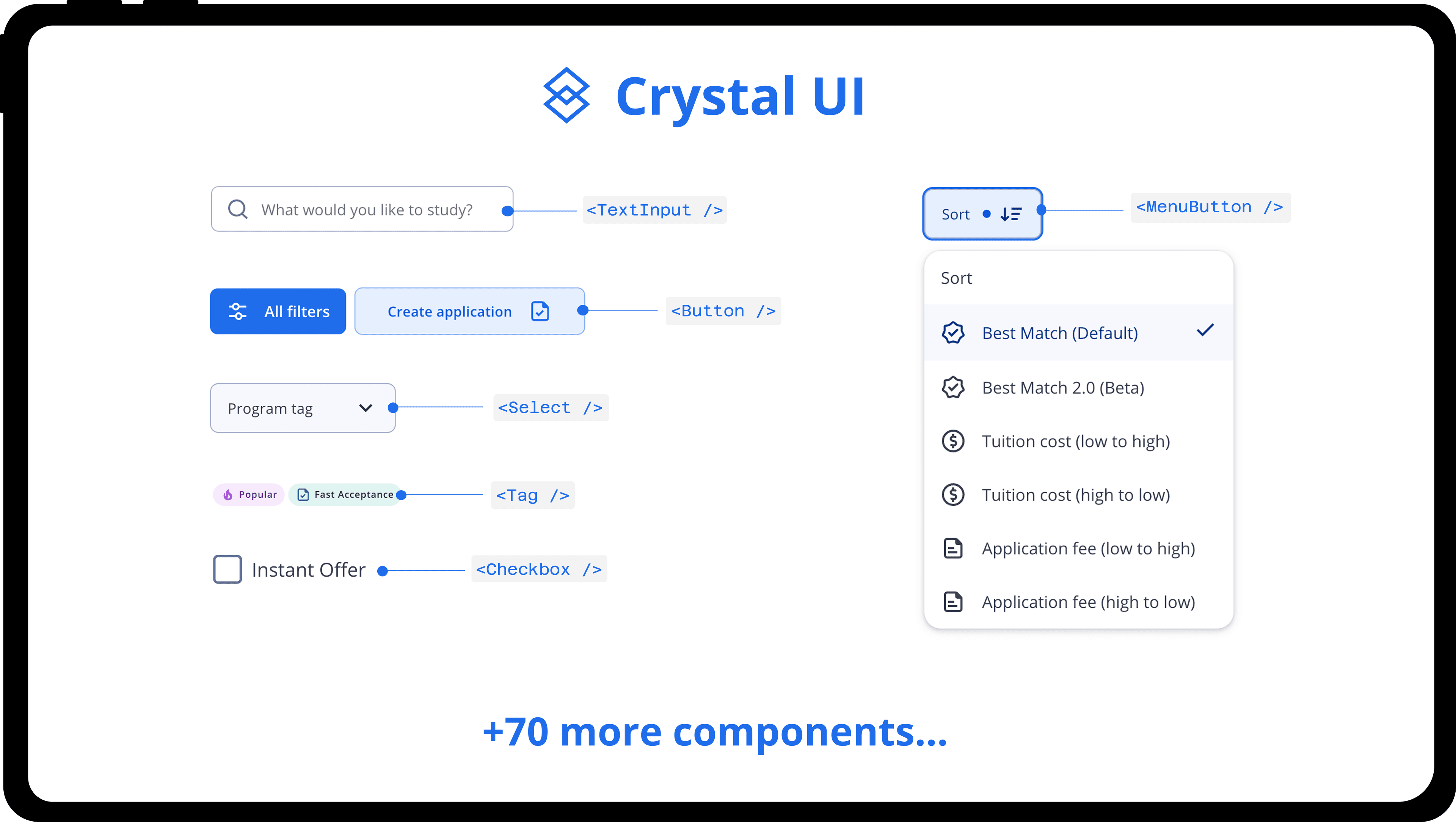 Crystal UI is one of ApplyBoard's most successful projects. It has been heavily integrated into the company's products, and has made the platform significantly more consistent, accessible, and maintainable.