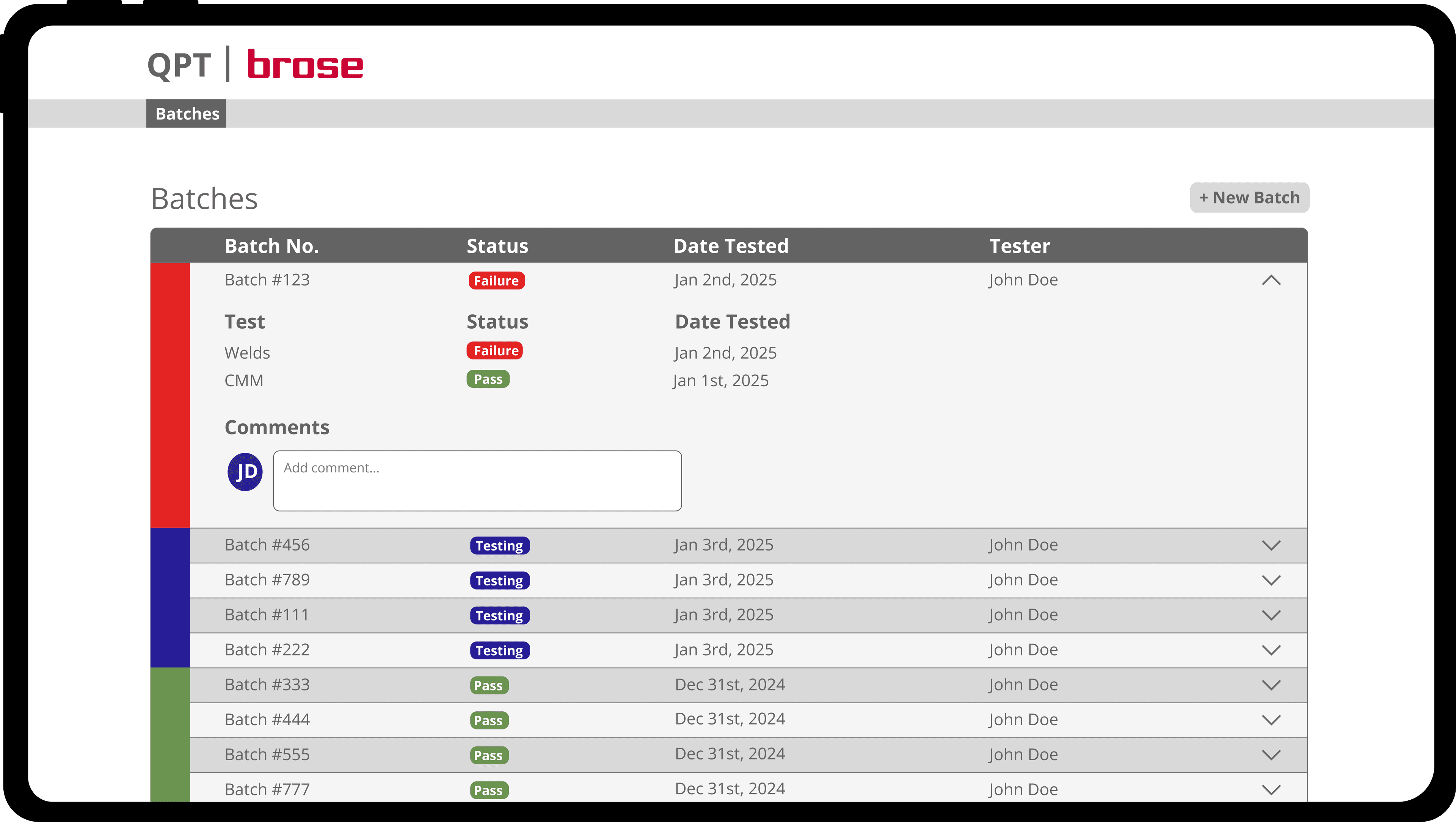 I created Brose's Quality Process Tool (QPT), a web application that allowed Brose London's quality lab to track and manage their quality tests for the company's automotive components.